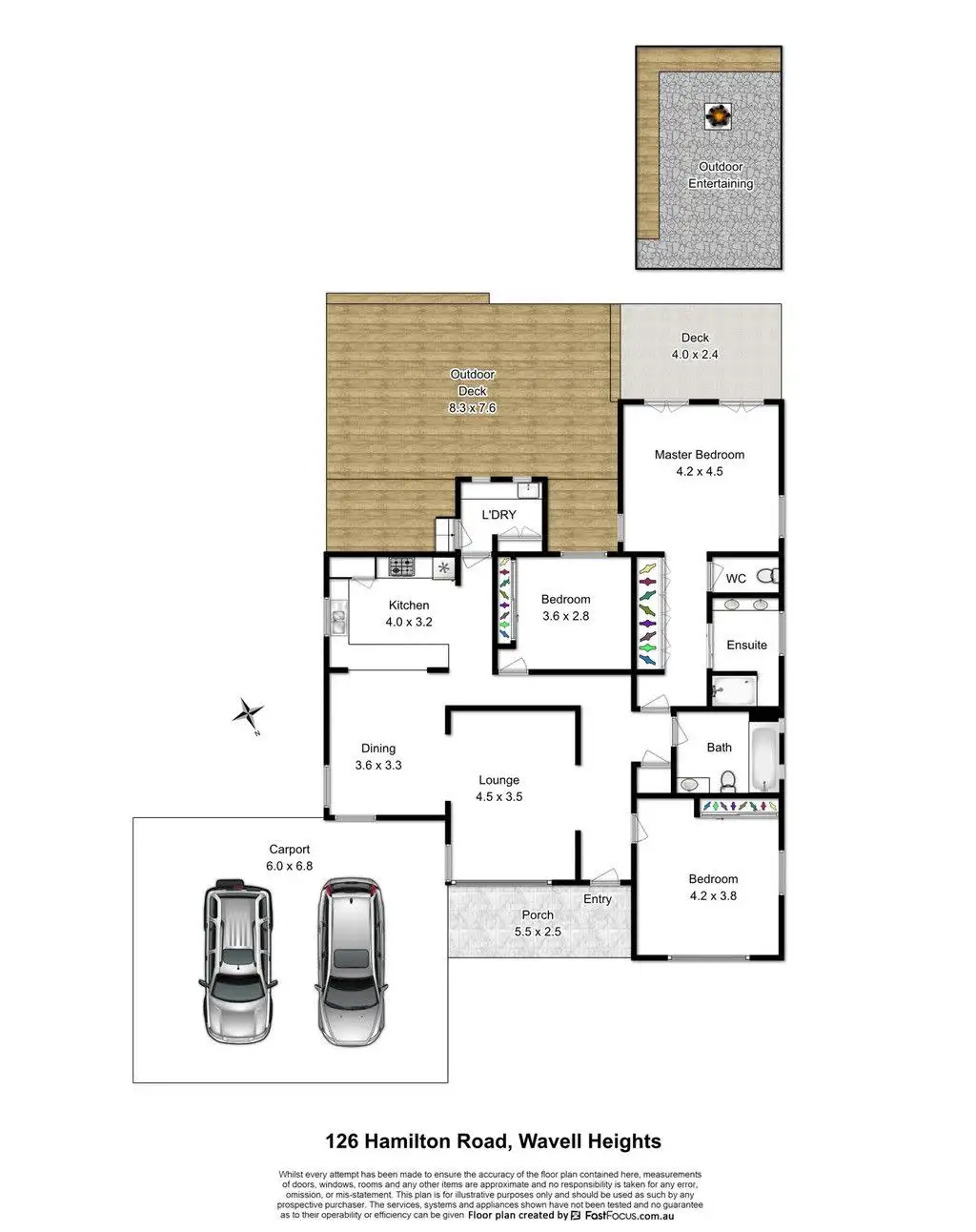 * Expansive entertaining deck that includes various zones to spread out and enjoy such as the covered patio or fire pit with raised timber seating- entertain your friends and family at ease all year round.