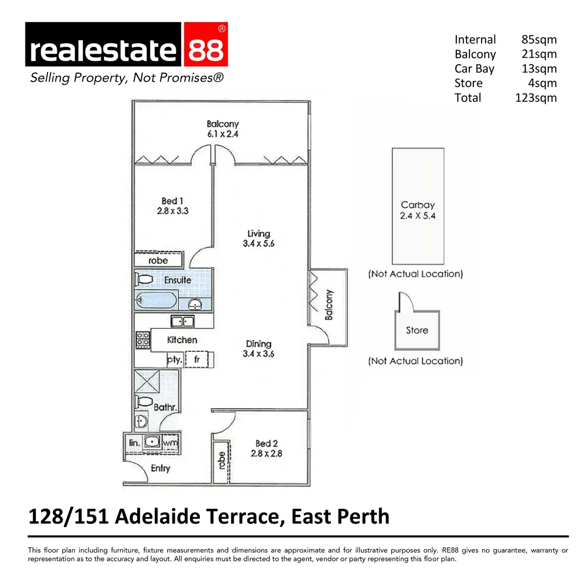 -Internal: 85sqm, Balcony: 21sqm, Car: 13sqm, Store: 4sqm, Total: 123sqm
