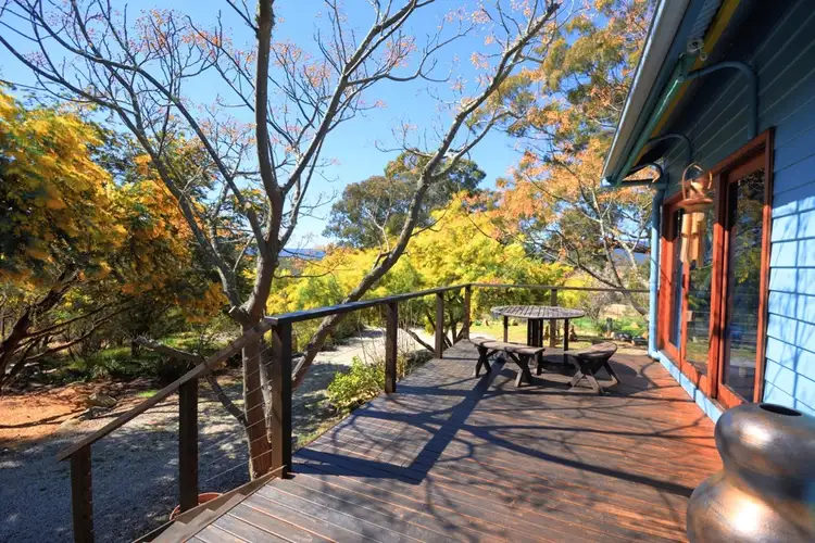 Everything about this property has been approached with a creative, practical and environmentally aware sensibility. The original house was extensively renovated in 2003/2004 to take maximum advantage of its location - beautiful views of the surrounding countryside, garden and bushland fill every large picture window, and indoor living spaces flow effortlessly to spacious decks and verandas that allow enjoyment of every season. Astute plantings of the deciduous Australian native Melia azedarach provide shade to the north and west in summer, whilst allowing the house to be bathed with sunlight in winter. The high raked or curved ceilings, hardwood floors, wood heater, open plan kitchen, waratah motif stained glass window, handcrafted silky oak front door and various sectionable living/dining areas provide warmly welcoming, versatile spaces. There are three bedrooms, the main has a luxurious ensuite and another tucked away spacious room that would be perfect as a study, baby's room or quiet yoga/meditation retreat. Upstairs, a generous open loft is another adaptable room with wonderful ambiance - what a great studio, guest suite or TV room.