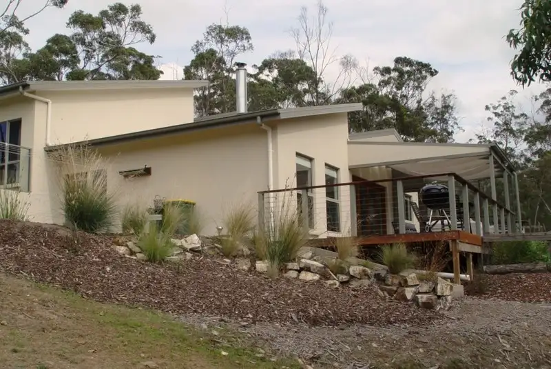 This stunning home sits in a cleared area surrounded by native floral gardens. The block is 10.9 hectares of bush with Snug River flowing through it, so it's a haven for native wildlife including birds, echidnas and pademelons which can be viewed nightly from the lovely deck.