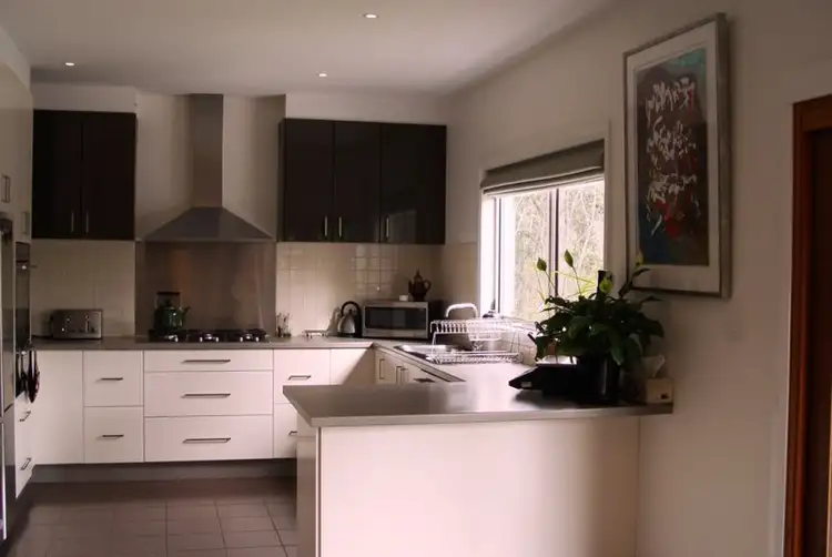 With a northerly aspect, living areas are full of natural light giving the house a feeling of space. Double glazing and Hebel panel construction provide heat retention in winter. The house includes a range of energy efficient fittings, such as heat pump hot water service and low wattage down-lights. The kitchen features quality Electrolux E-line double oven and dishwasher and all wet areas have Hansa tapware. 55,000 litres of water storage in 3 tanks provides abundant supply for a family and for irrigation.