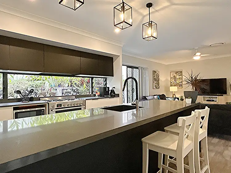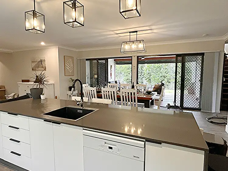 This modern, architecturally designed four-bedroom, three-bathroom home with higher than standard ceilings designed to create air flow, is full of quality fixtures and fittings and presents as new. It has a 9-zone ducted air conditioning system and comes with a 6kW solar system. There is a large double garage with an easy-to-clean epoxy resin floor and further driveway parking for two cars, plus another car/boat/caravan trailer to the side of the house. It is situated in a quiet area and is surrounded by quality homes, close to primary and high schools, public transport, and all necessary amenities.