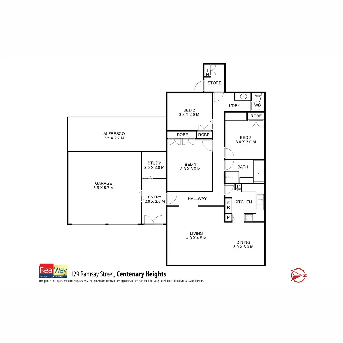 3 Bed • 1 Bath • 2 Car • 852m²