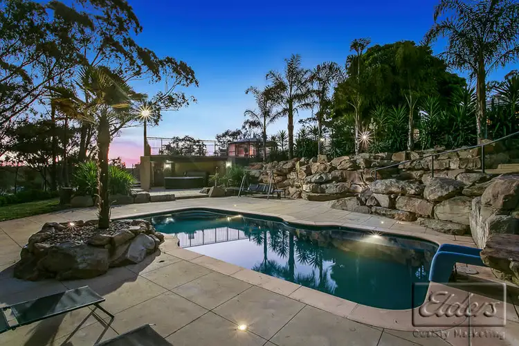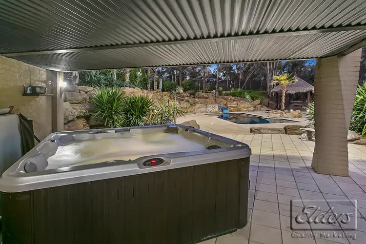 - As you enter the backyard from the carport you will come to a rustic gazebo, an ideal spot to set up a barbie and bar to cater for a most memorable gathering on the paved alfresco area that extends outward from here revealing elevated views over a picturesque dam to the rear, and to the side a supremely inviting high quality salt chlorinated in-ground heated pool with spot light and ground level lights, extensively landscaped with magnificent rock formations and a Balinese hut with merbau decking.