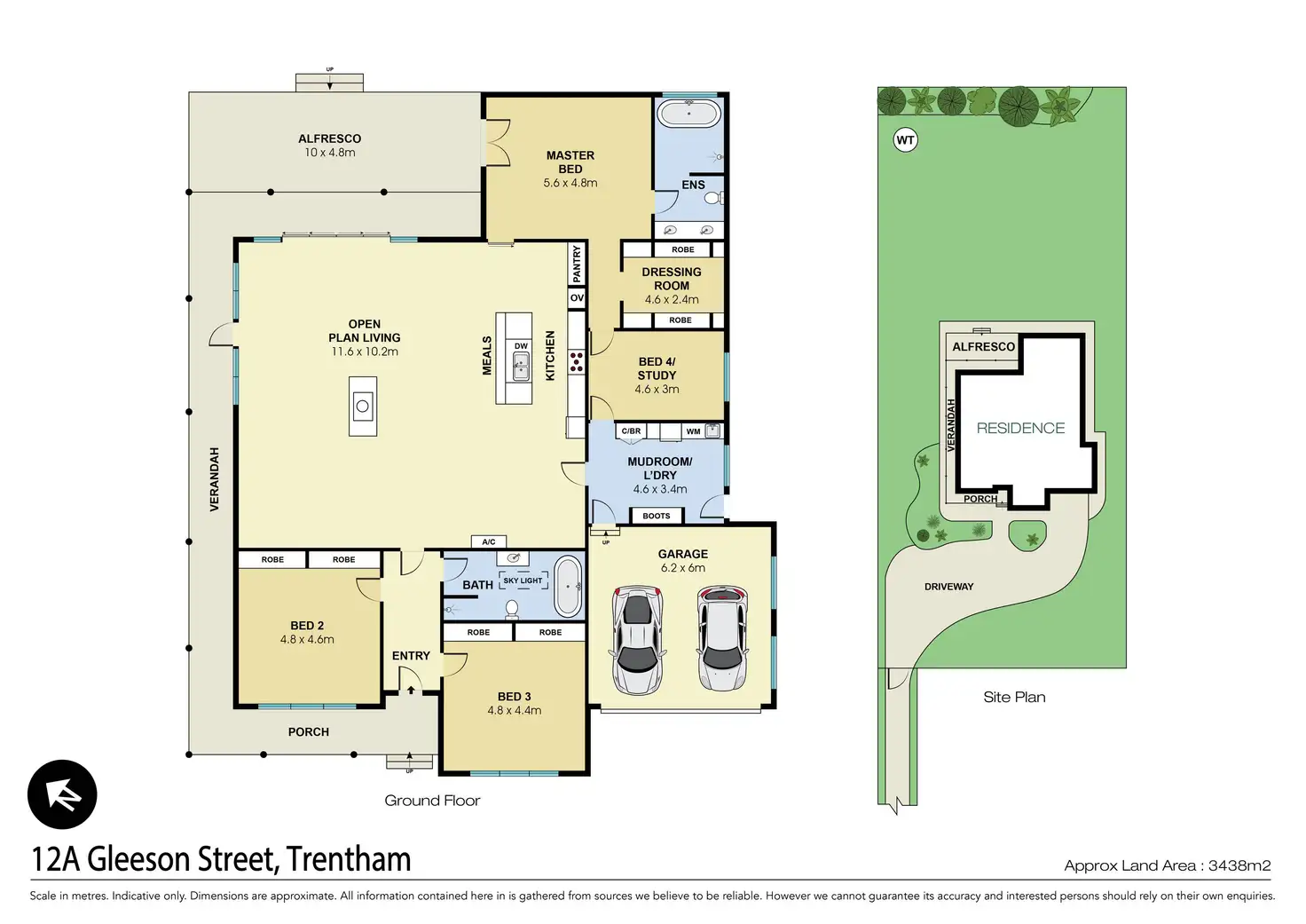 • Four large bedrooms, including a bedroom that could be used as a study or home office, tucked away from the living areas. Oversized open-plan living and dining with double-sided wood fireplace