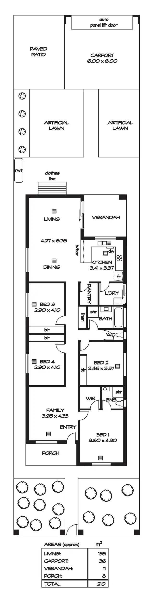Step outdoors and enjoy a coffee on a tiled alfresco portico, constructed under the main roof and conveniently located near the kitchen. A paved patio adjacent is a great place to entertain larger groups, all overlooking a synthetic grass covered rear yard and double carport with automatic panel lift door, conveniently accessed from the rear laneway.