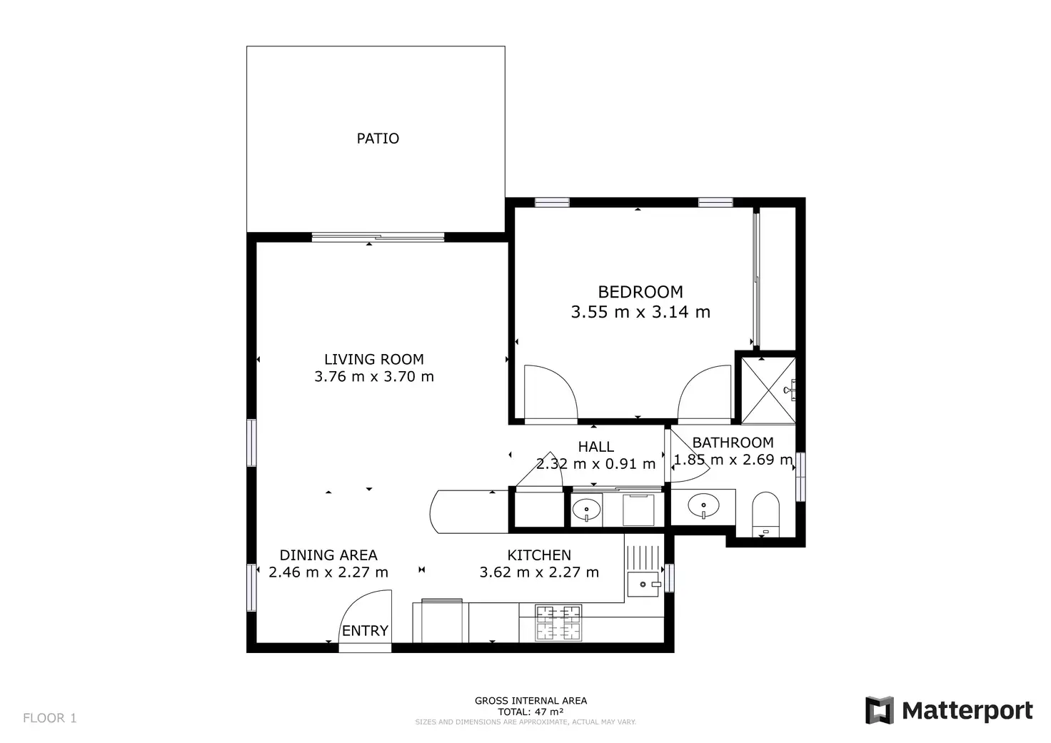 - Approximately 46 square metres of internal floorspace