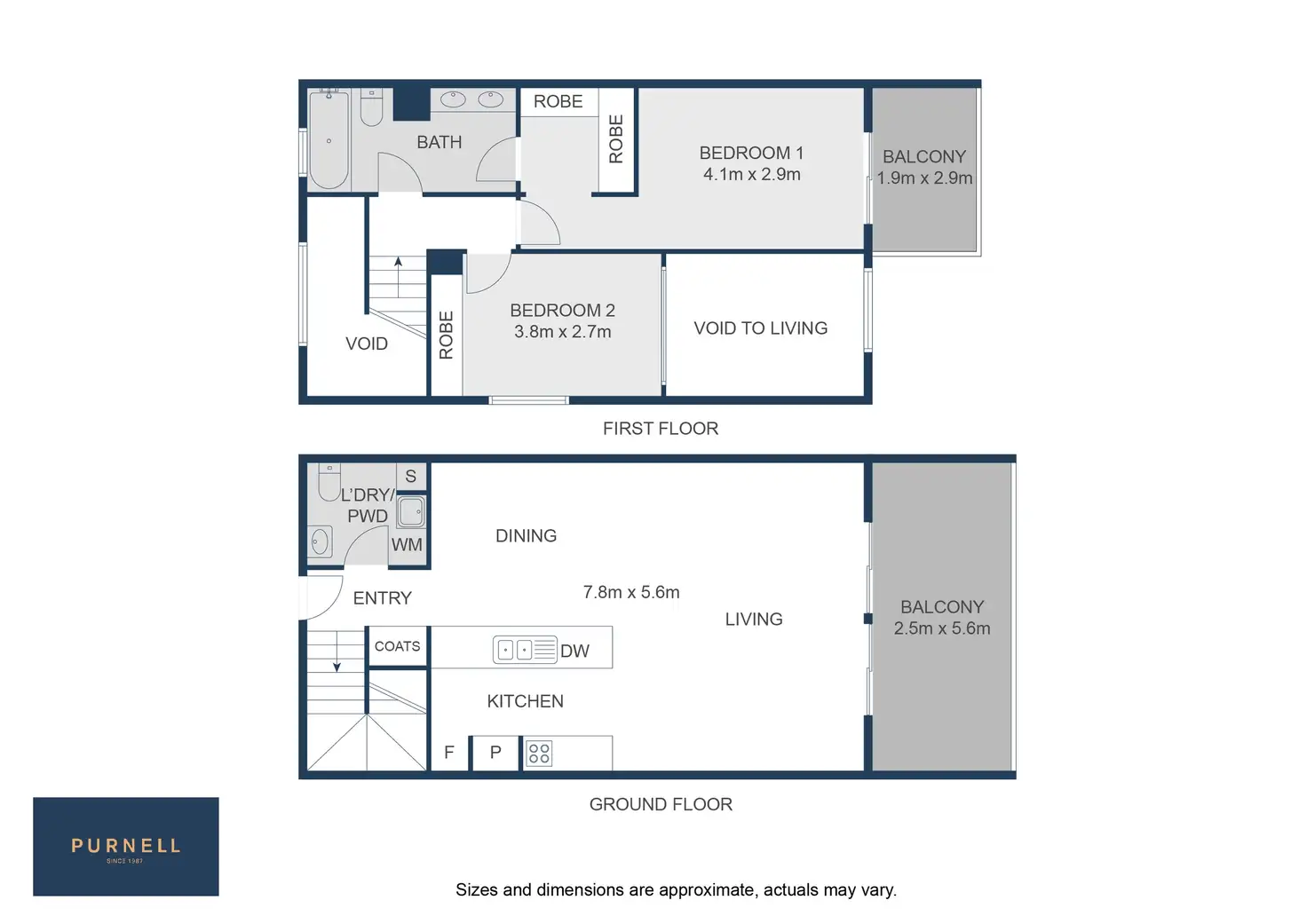Upstairs: two well-proportioned bedrooms, both completed with built-in robes. The master suite enjoys access to a private balcony, while the second bedroom looks onto the void below, inviting in natural light. Both bedrooms are generously sized and complement the apartment’s considered layout.