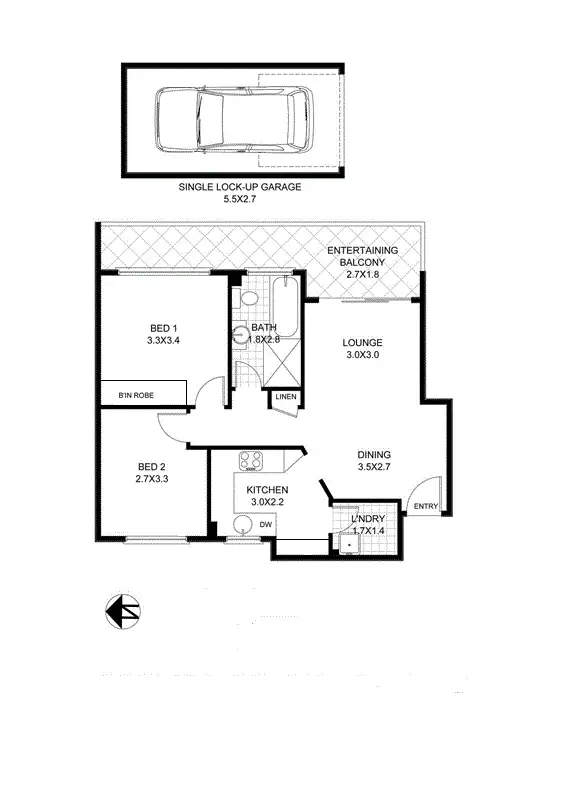 2 Bed • 1 Bath • 1 Car