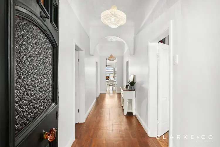 The warm welcome continues as you step inside, revealing the home's stylish interior and traditional features within. There are soaring ornate ceilings, hardwood timber flooring in the hallway and bedrooms, chic pendant lighting, and a neutral paint palette throughout.