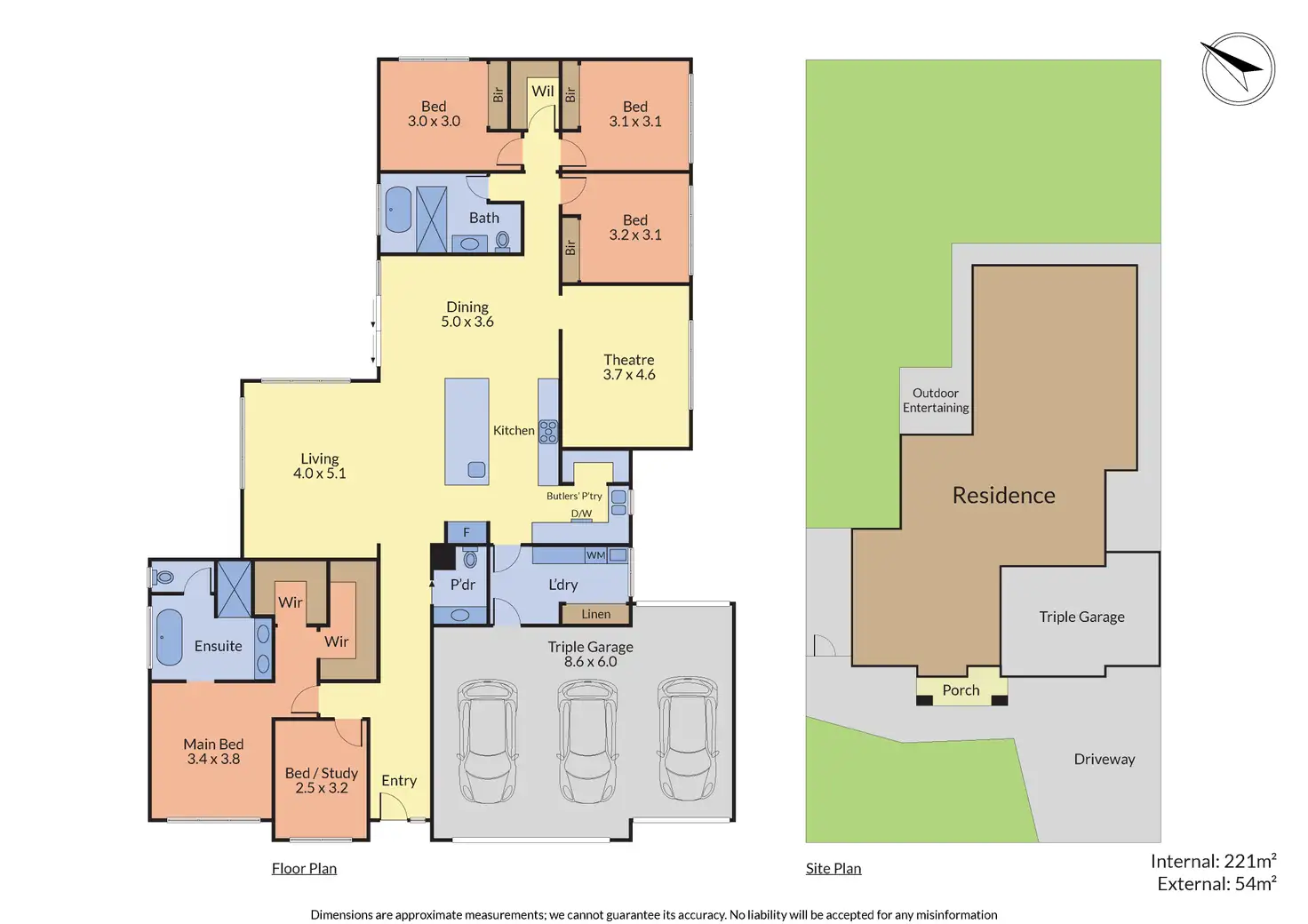 • Triple auto garage with auto roll through & internal access