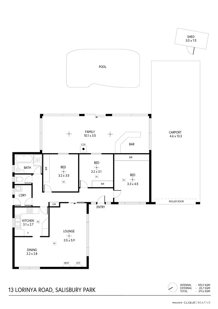 • Internal 145m2 approx.