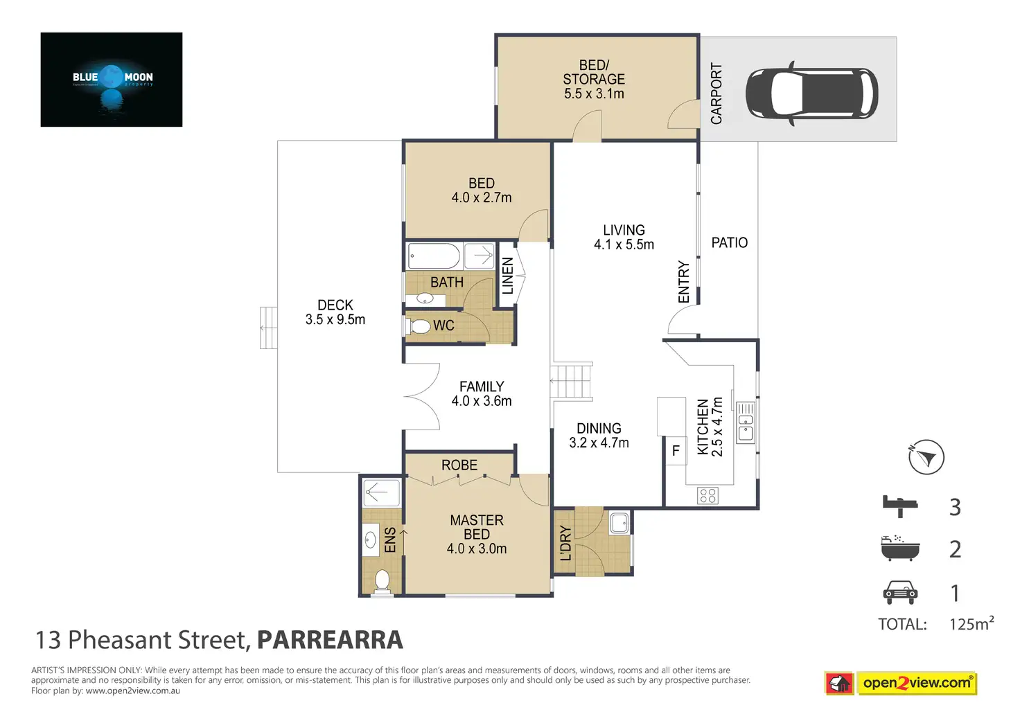 3 Bed • 2 Bath • 2 Car • 650m²