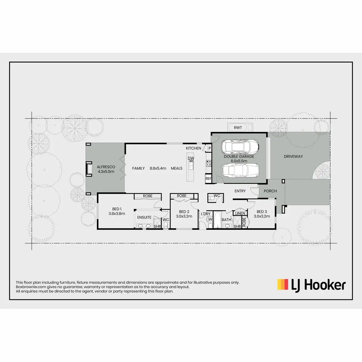 - Accommodation includes three bedrooms, each boasting built-in robes and plush carpets underfoot. The generously sized master suite indulges with a stylish and luxurious ensuite, while the remaining two bedrooms share access to the modern family bathroom.