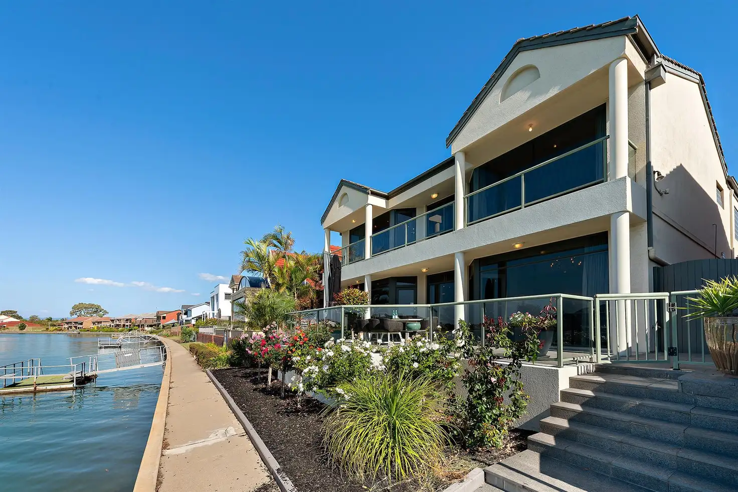 Perfectly positioned this imposing North facing family residence encapsulates water front living at its finest with breathtaking panoramic lake views.