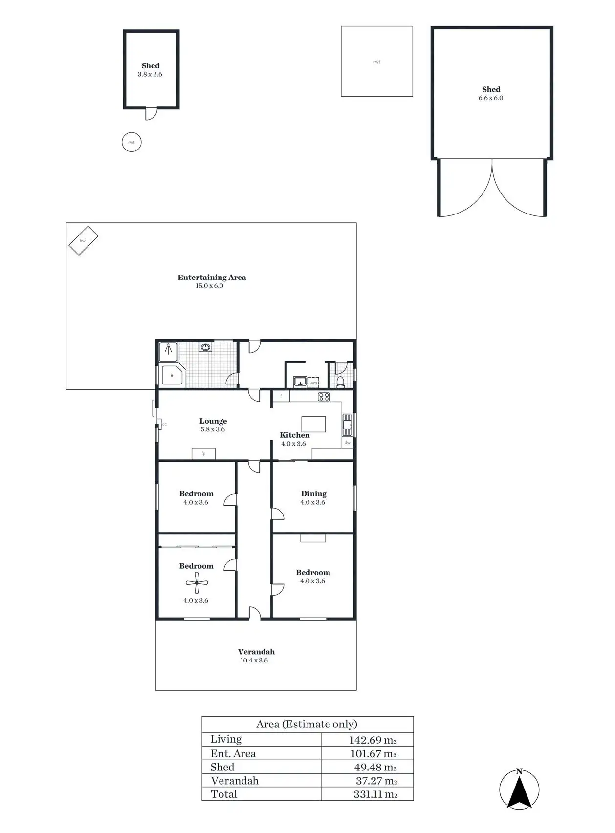 • Large Shed- with large driveway, plenty of space to store a boat or camper.