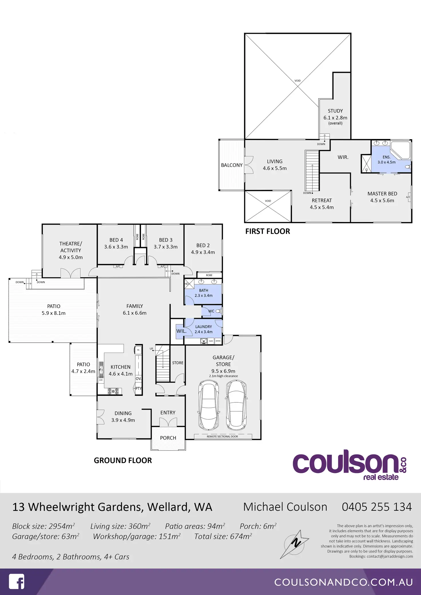 Two storey - 360sqm living - 151sqm Workshop - 2956sqm block