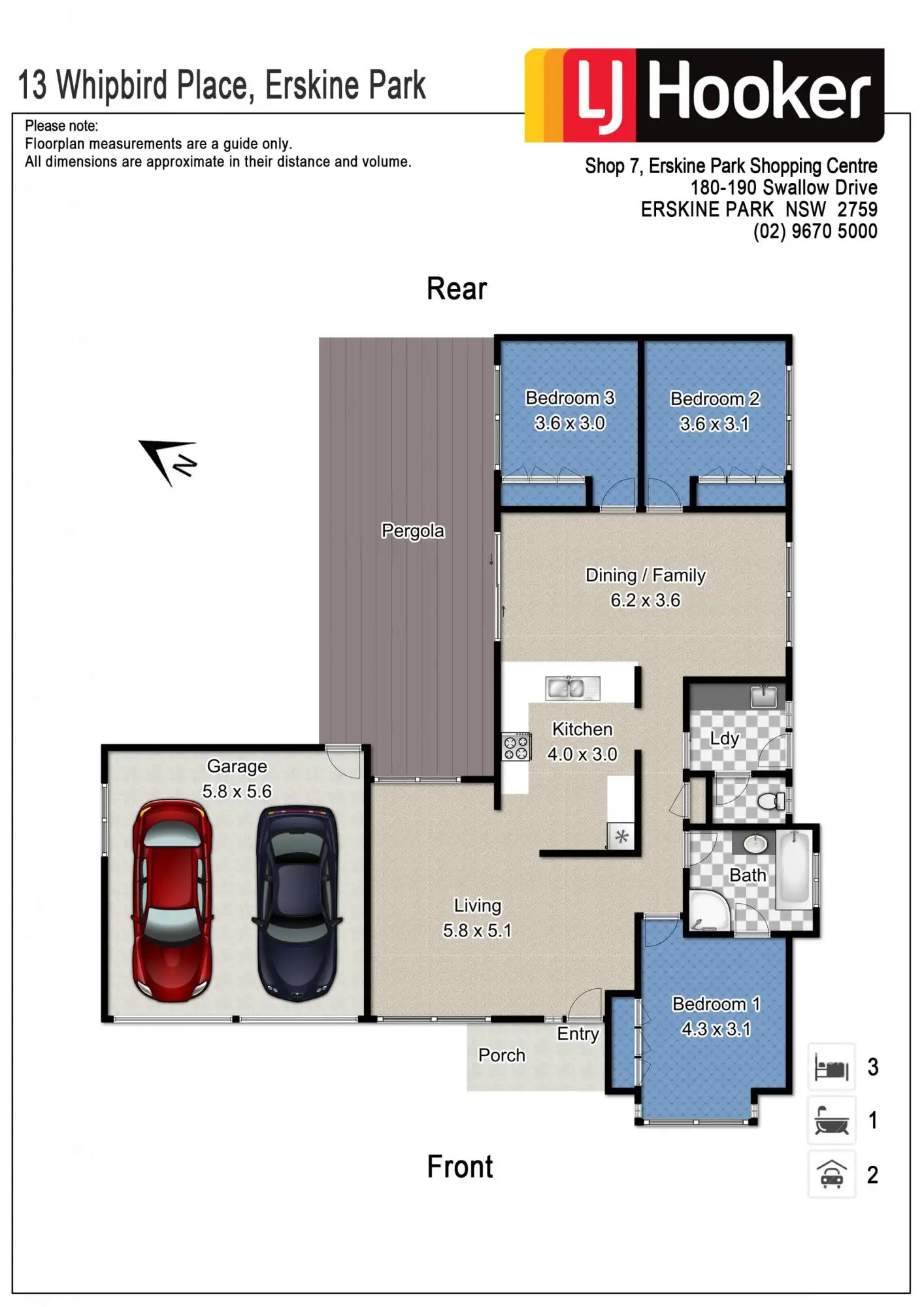 3 Bed • 1 Bath • 2 Car • 631m²
