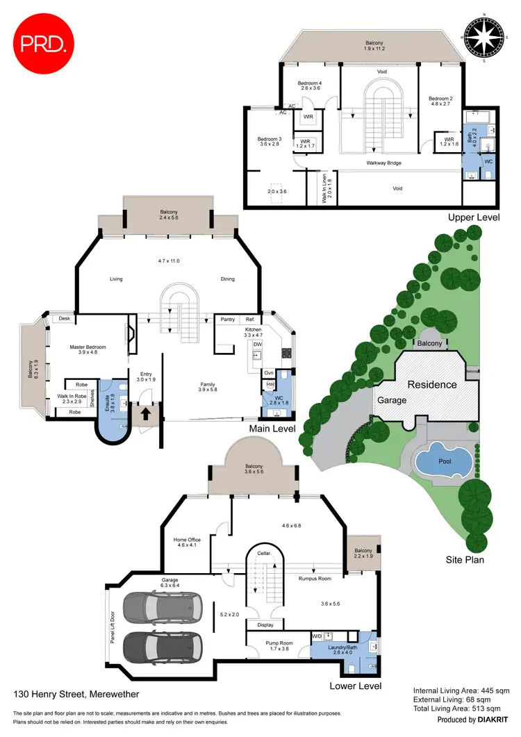 - Two separate living and dining areas on main level opening to verandah and pool