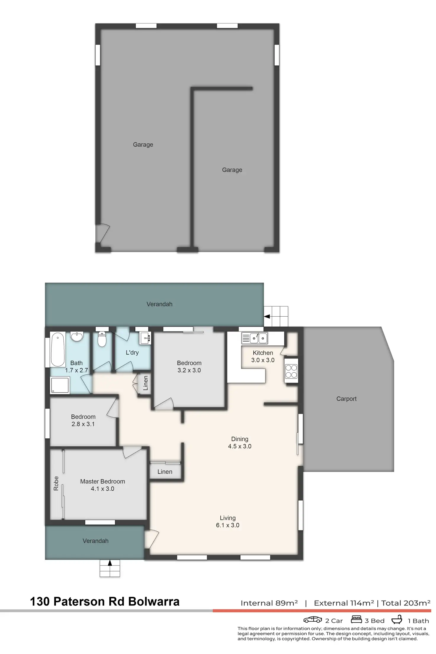 3 Bed • 1 Bath • 3 Car • 841m²