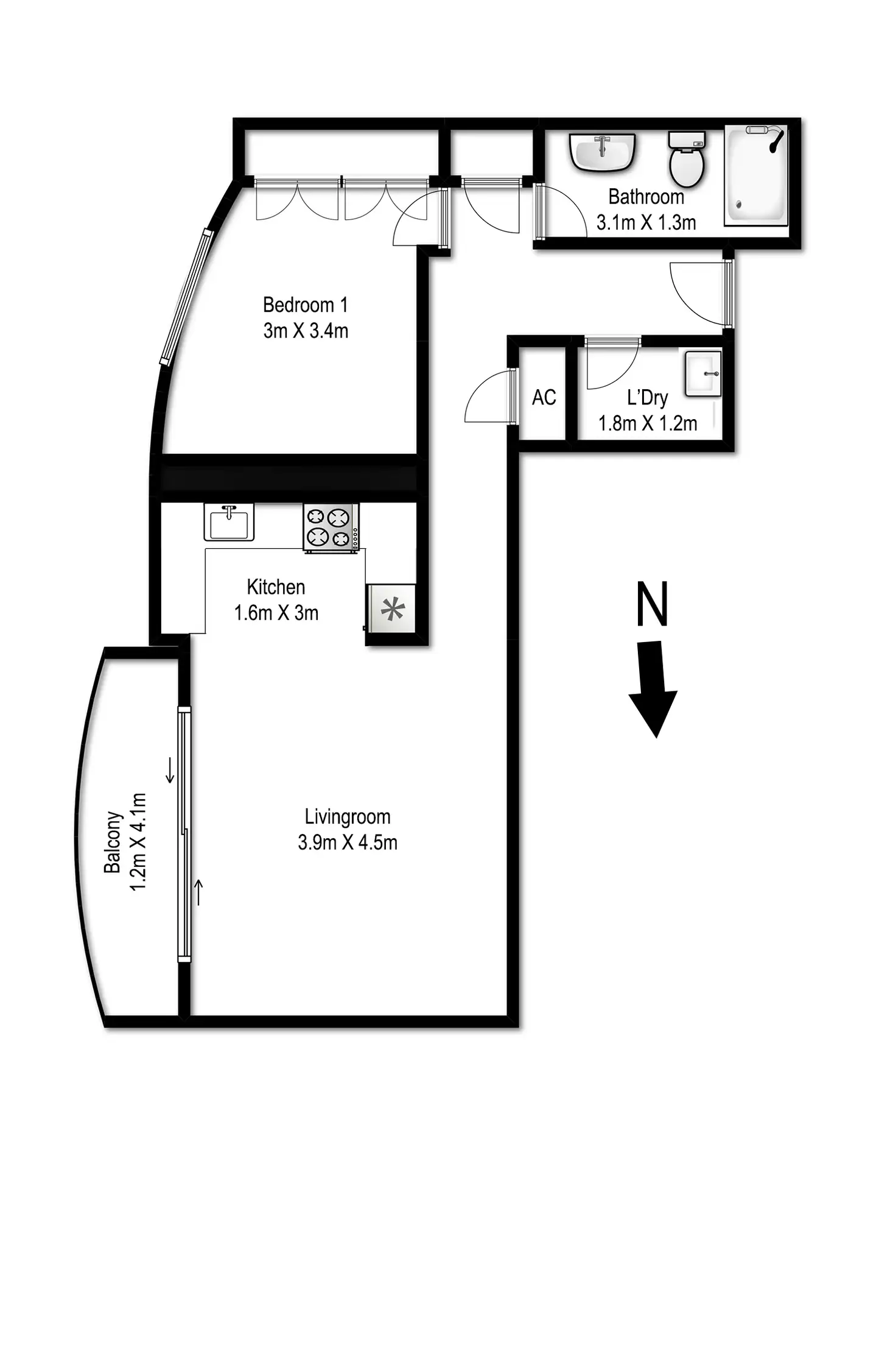 1 Bed • 1 Bath • 0 Car
