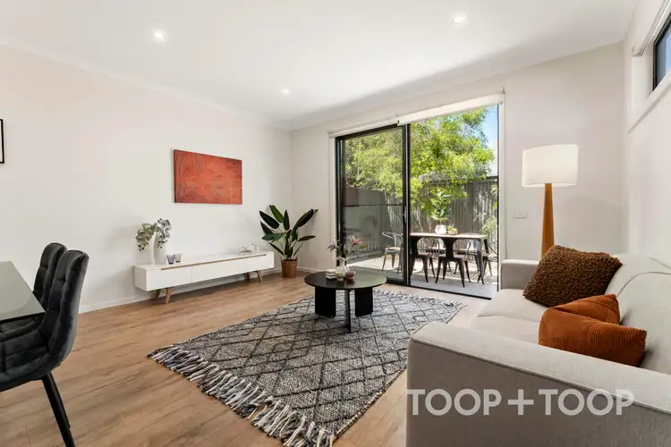 Discover a lifestyle of convenience and modern elegance at 130B North East Road, Walkerville. This thoughtfully designed townhouse offers three spacious bedrooms, each exuding warmth and style. As you step inside, you are welcomed by an open-plan living area that effortlessly marries comfort with functionality. The contemporary kitchen is well-appointed with sleek cabinetry and quality appliances, making meal preparation a delight.