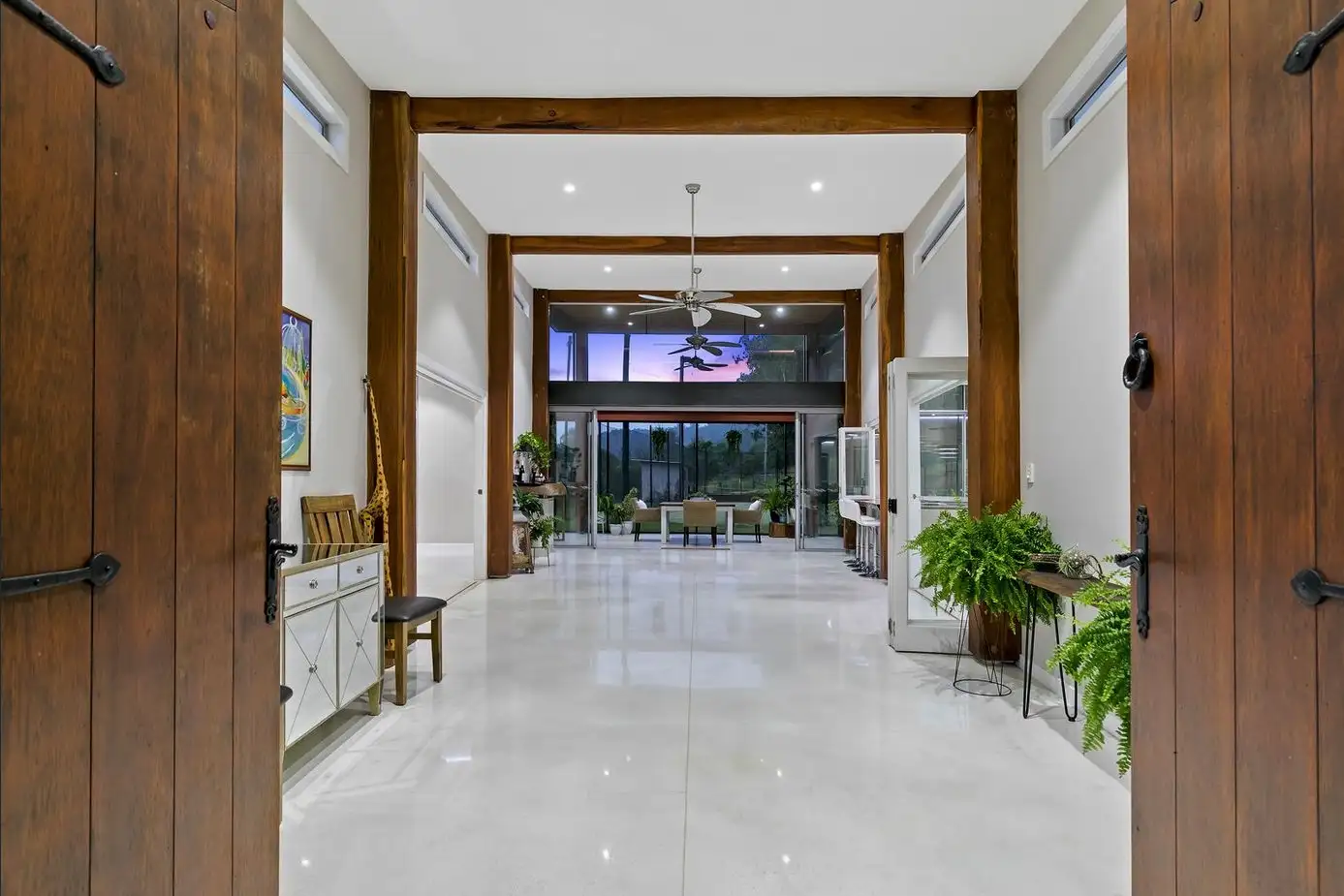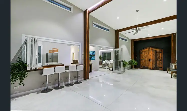 All on one level for ease of maintenance, functionality and seamless flow; the home has an impressive timber double door entrance that opens up to an expansive living area with huge timber columns and high ceilings dividing the home into two wings.