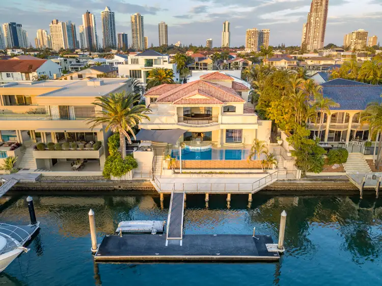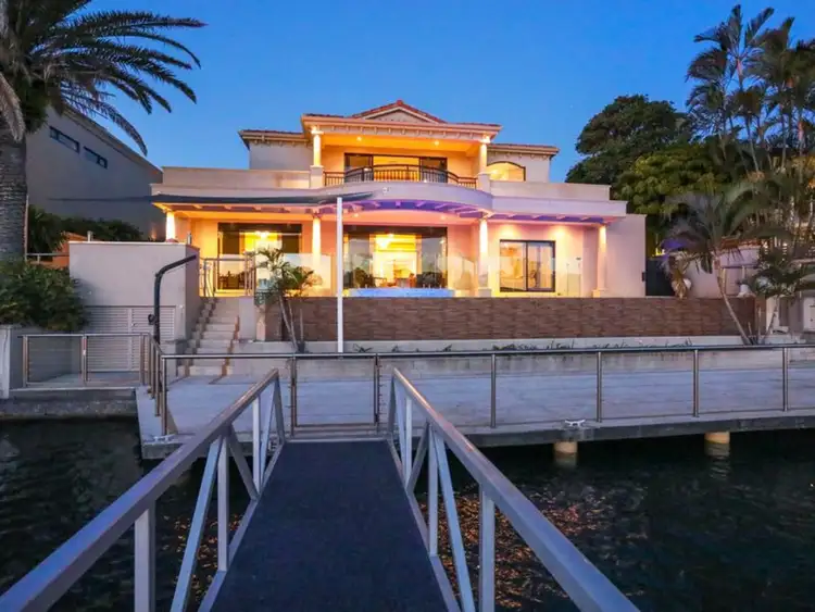 Escape to a grand European inspired sanctuary, with this magnificent 2-storey, 4 bedroom residence in the exclusive Paradise Waters enclave. Boasting a sought-after outlook across to The Southport School, and nestled on a vast expanse of Main River, it features an abundance of flawless marble finishes throughout, including a sweeping staircase set under a spectacular domed ceiling, exquisite joinery, multiple indoor and outdoor living and entertaining areas, incorporating a formal lounge with wet bar and separate impressive formal dining room to accommodate 12. Youll also be enchanted with the gourmet granite kitchen with Smeg appliances and your choice of enviable alfresco areas, with a sunny, secluded courtyard off the kitchen and the rear of the home boasting a versatile entertaining area with fully tiled infinity edge pool.