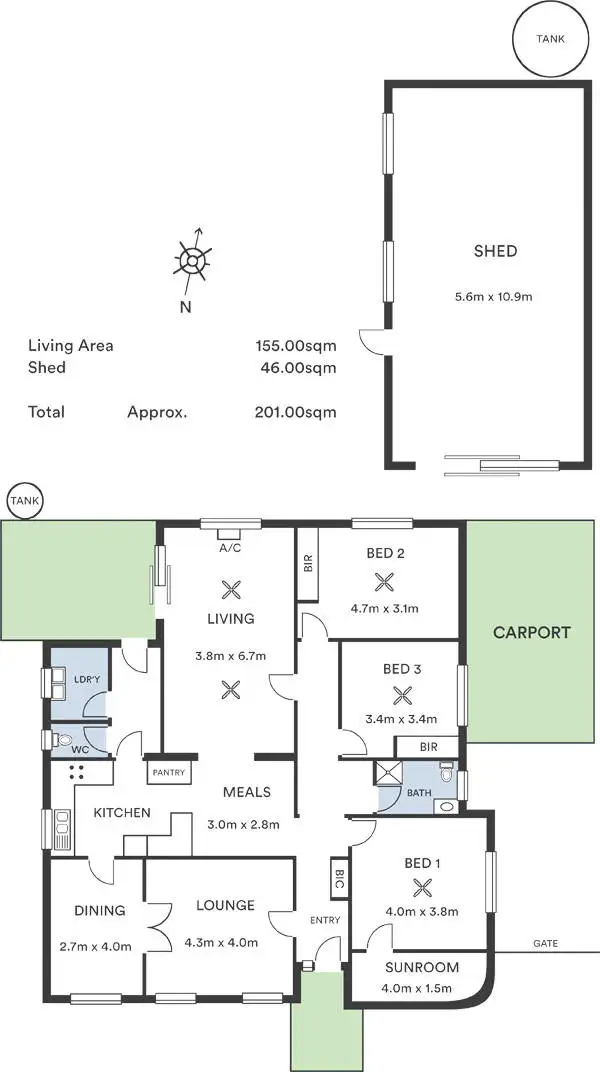 3 Bed • 1 Bath • 2 Car • 698m²