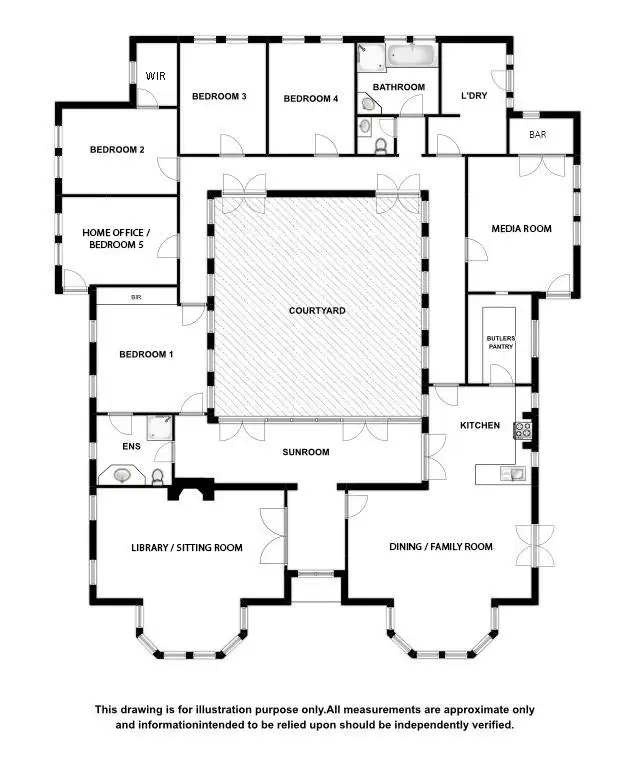 There are 5 large bedrooms, the main has a spacious ensuite, built-in robes and views to the central court-yard. Bed 2 features a large WIR whilst all the other bedrooms have generous built-in robes. Bed 5 is currently used as a home office with its own private access.