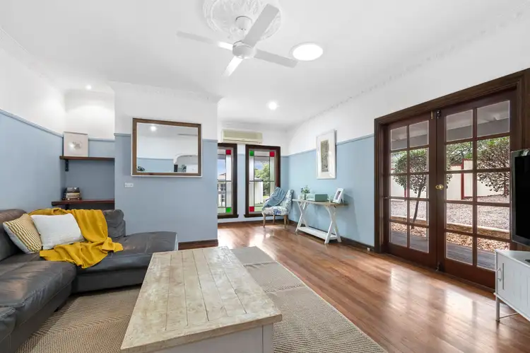 Warm hardwood flooring runs seamlessly throughout the residence, further enhanced by a cosy combustion fireplace and efficient split-system air conditioning.