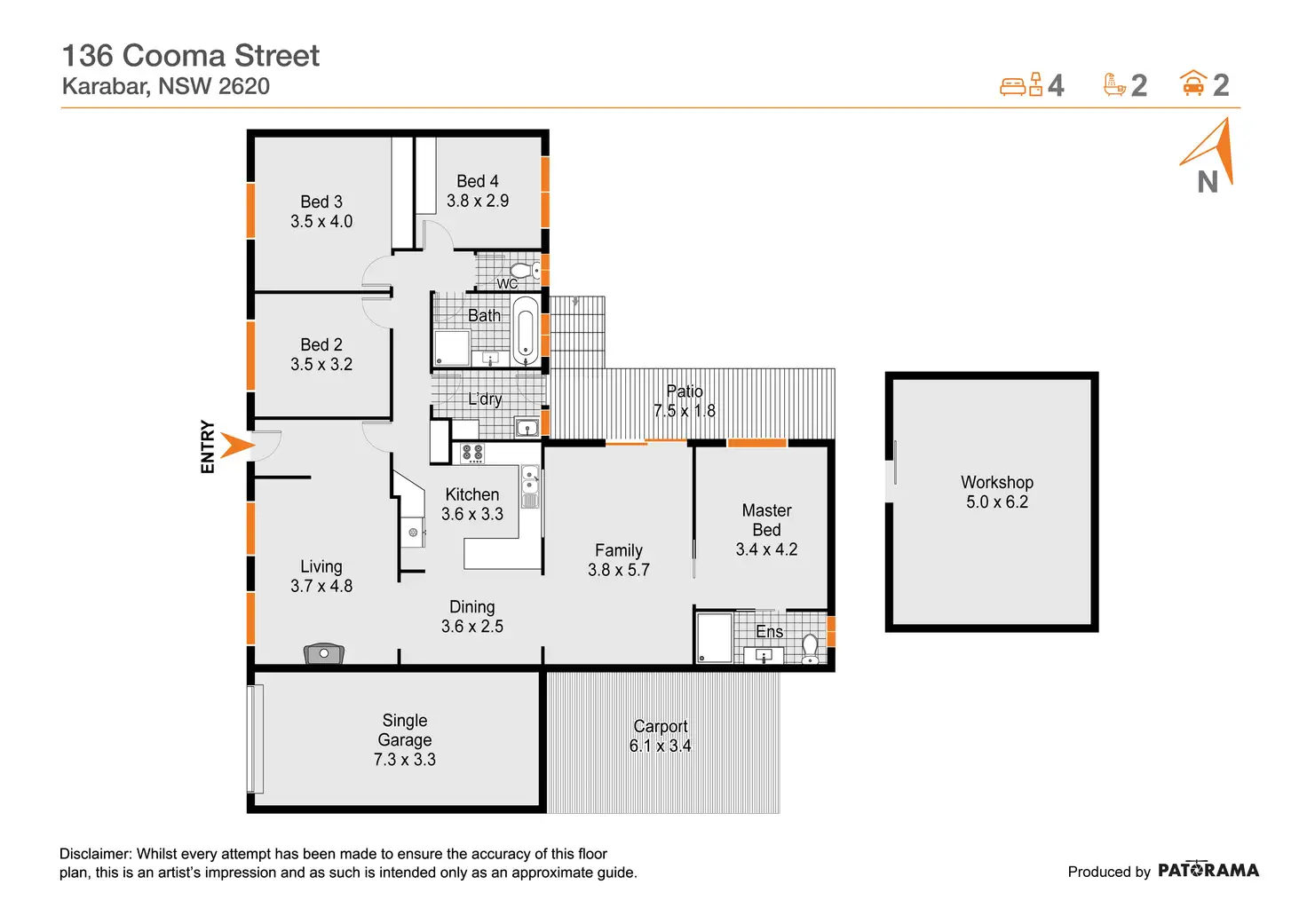 4 Bed • 2 Bath • 2 Car • 604m²