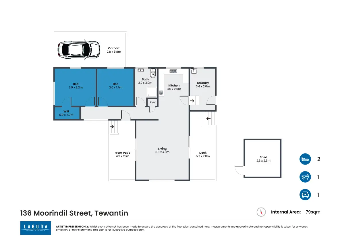 2 Bed • 1 Bath • 1 Car • 679m²