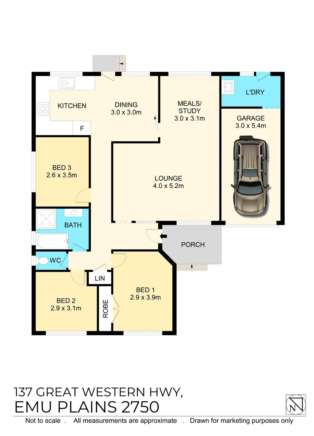 3 Bed • 1 Bath • 1 Car • 607m²