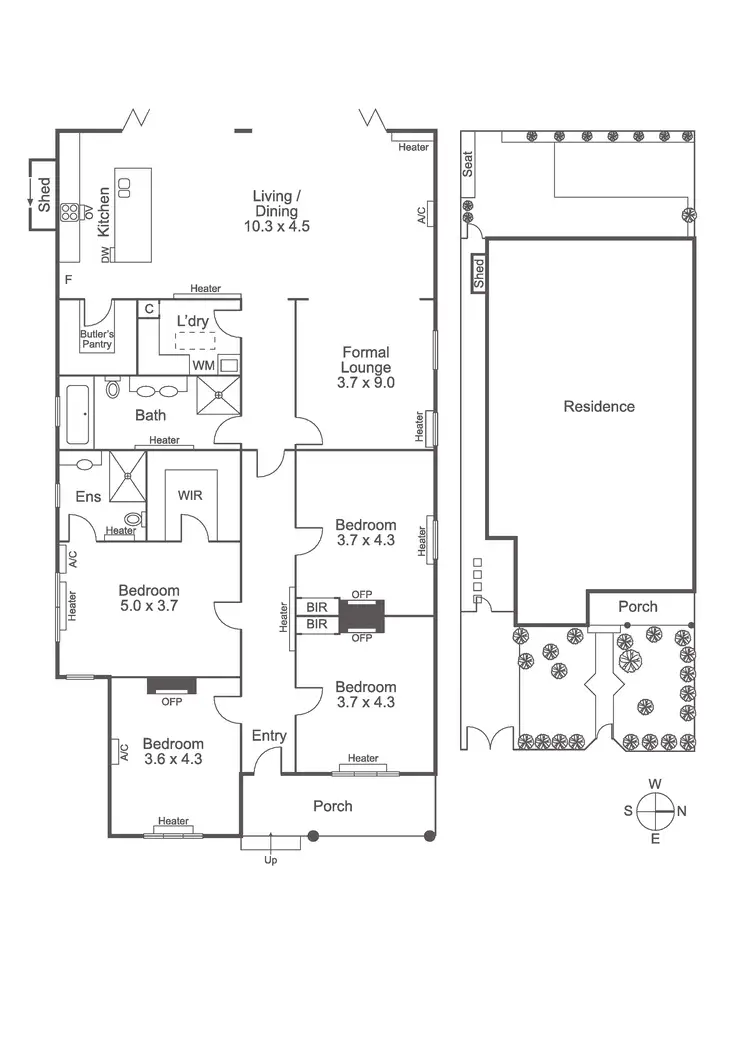 * Low-maintenance landscaped and established garden with shed tucked away on side of property
