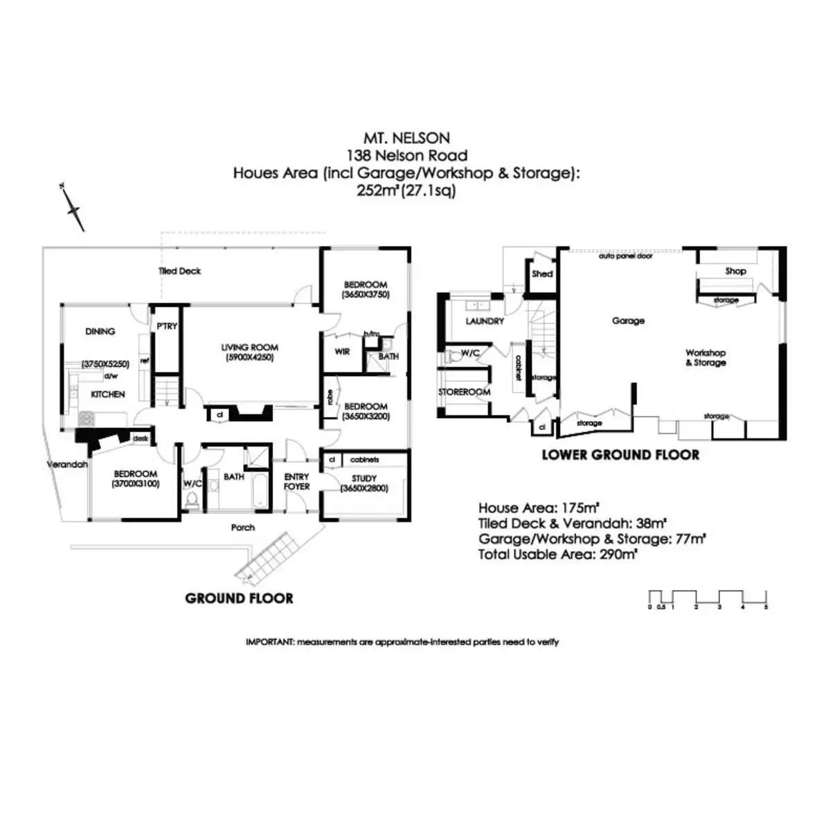 The staircase to the lower level reveals a utility area with laundry, second WC and storage room opening into a large workshop and garage with automatic roller door providing secure OSP and most importantly, vehicular access to the rear of the property which is a rarity in Mount Nelson. A combination of electric and wood fired central heating ensures year round comfort. With low maintenance gardens at the front and a well fenced terraced rear yard, an enormous fruiting grape fruit tree is a testament to the homes sunny and sheltered location!