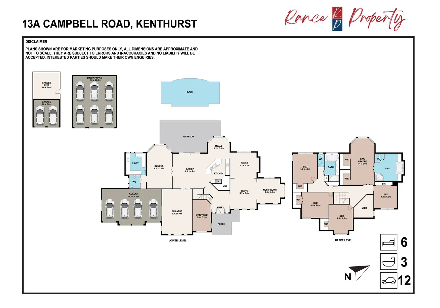 - Formal lounge/dining, sunken lounge, music room, meals conservatory, rumpus & games room
