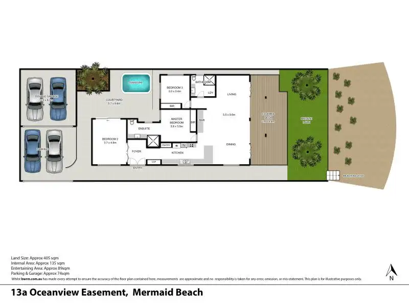 * 12.6m wide beach frontage situated on 405sqm block