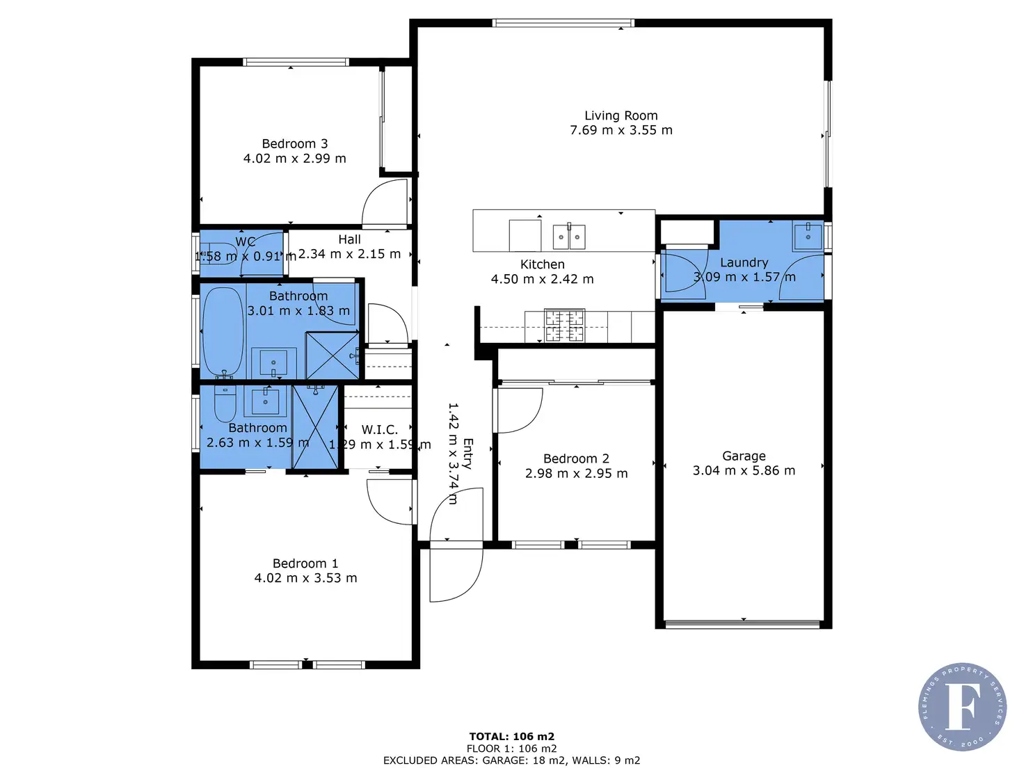 3 Bed • 2 Bath • 2 Car