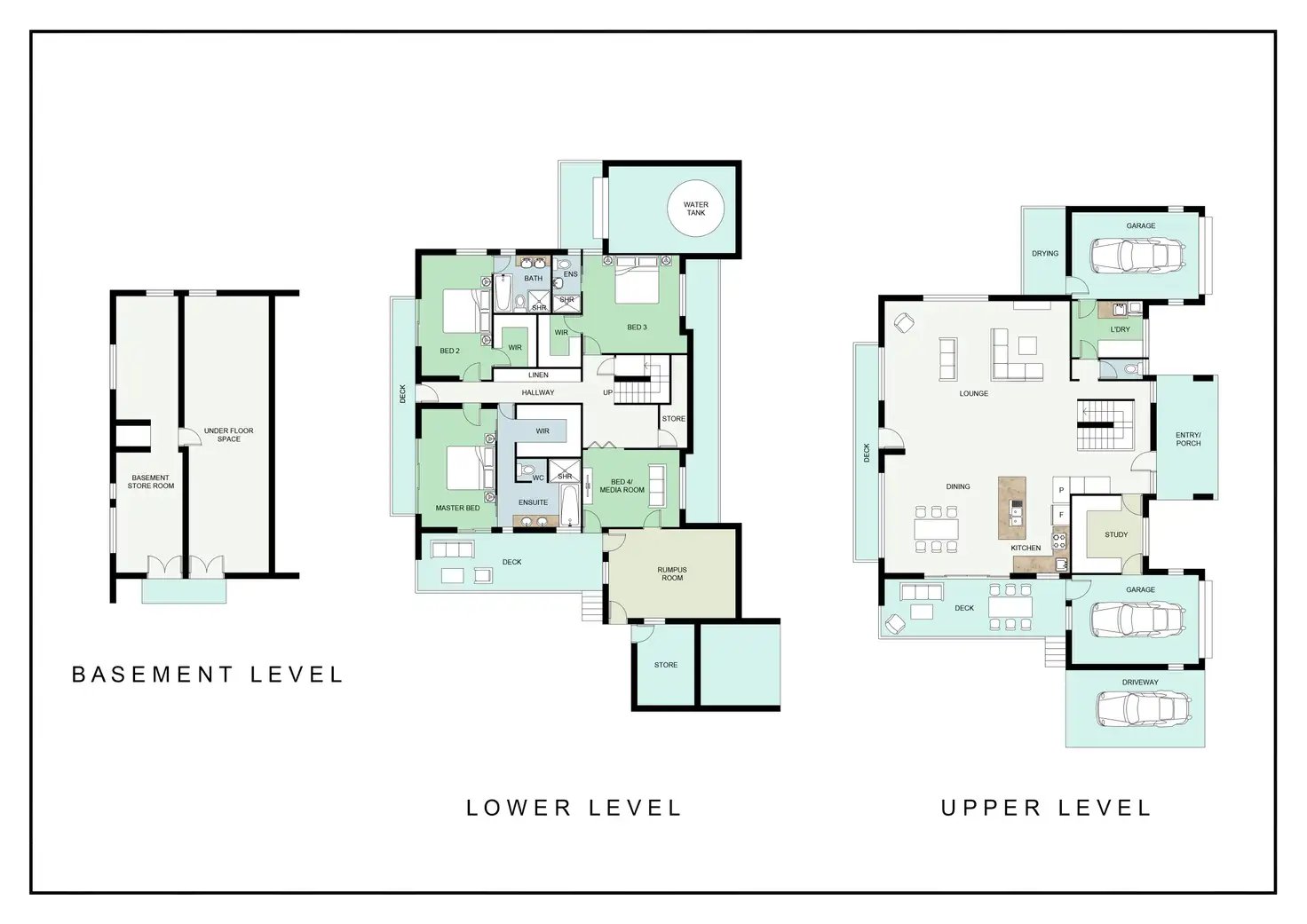 Working our way down to the third and final level of this home you'll find masses of utility and storage space. There is no need for a shed here as this basement level of the home has workspace and storage covered, spanning 100m2 we think you'd find it hard to fill. Some other finer details of this home include air conditioning throughout with split system units which even includes the ensuite, South Pacific Beech timber floors, C-Bus system, town water and 25,000L of filtered rainwater services the home.