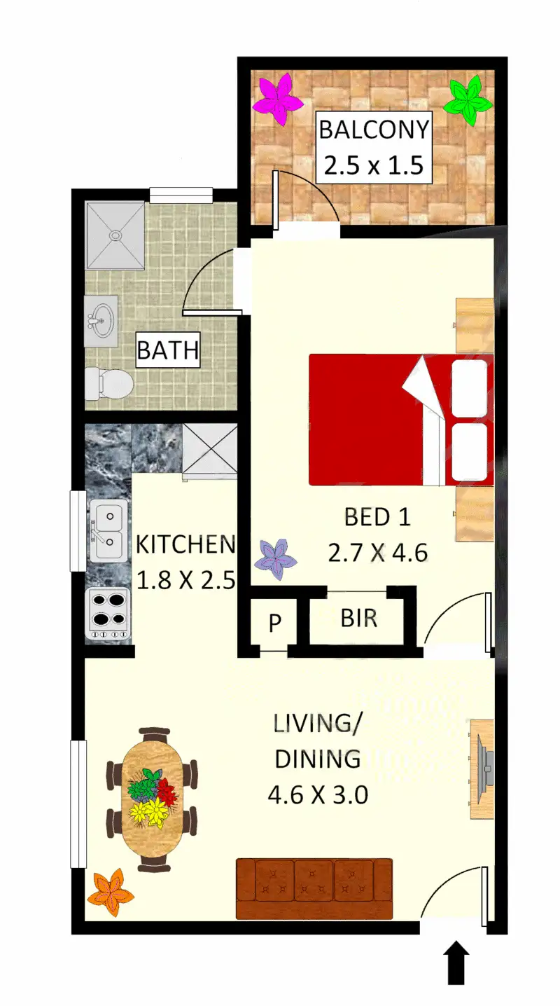 1 Bed • 1 Bath • 1 Car