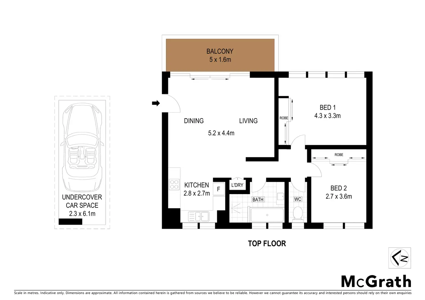 2 Bed • 1 Bath • 1 Car • 91m²