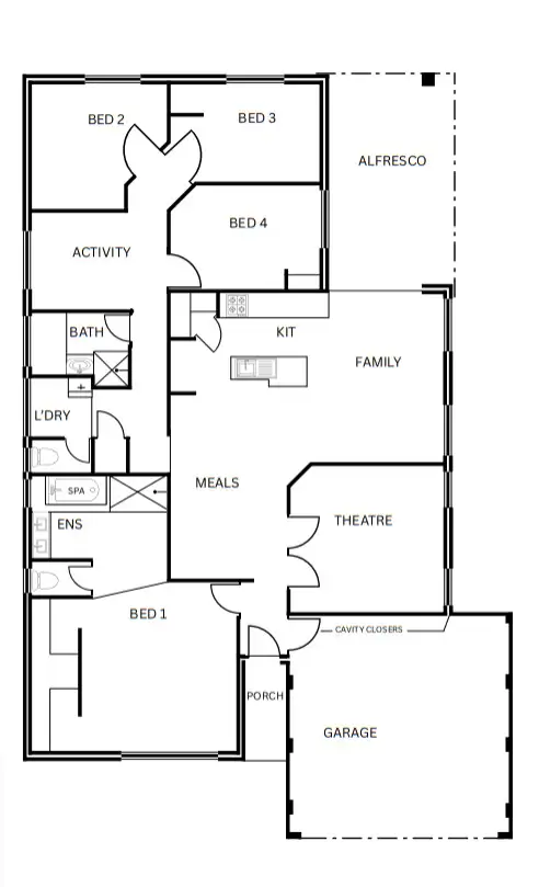 For movie lovers, the dedicated theatre room offers a cosy escape for Friday nights in — complete with new theatre doors that match the front door. From here, the home opens out to a spacious alfresco area that’s perfect for entertaining family and friends all year round. Fire up the BBQ, set the table under cover, and enjoy endless weekends in your private backyard paradise. There’s plenty of room for kids and pets to play, or even a competitive game of backyard cricket on those sunny afternoons.