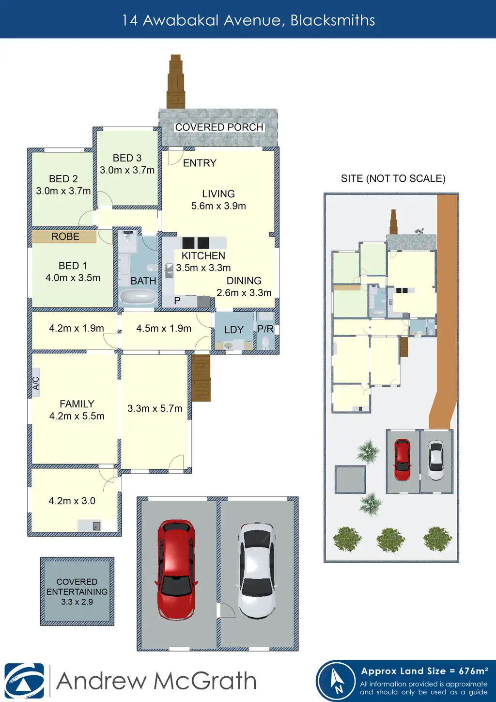 3 Bed • 1 Bath • 2 Car • 676m²