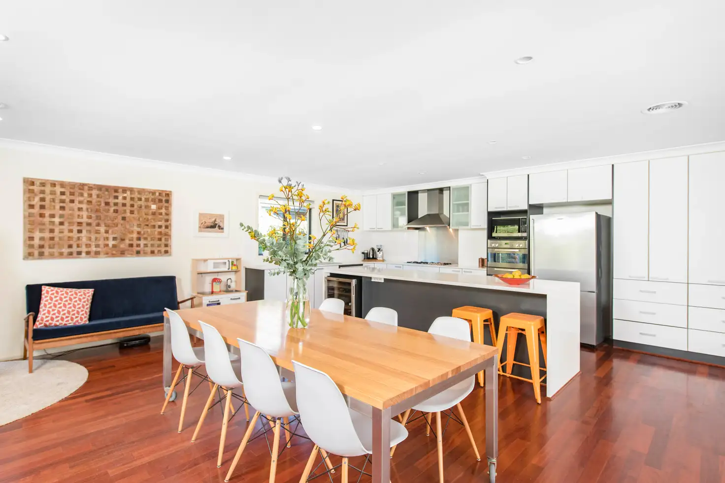 Beautifully understated from the street, key features of #14 include, the palatial, well-equipped kitchen with double wall ovens, four door pantry, five-burner gas cook-top, metres of Caesar Stone island bench and under-croft Vintec wine fridge. Solid rosewood flooring throughout the huge open plan family and meals, and through to an adjacent family/television room, both of which rooms open to a covered alfresco entertaining area. A more formal segregated lounge to the front provides desirable segregation, and a cosy warm space with garden views.