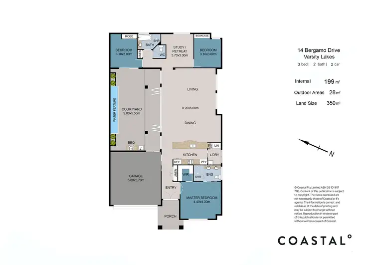 Solidly built and designed for effortless coastal living with soaring 12ft cathedral ceilings, the vast open plan kitchen, living and dining zone enjoy an effortless indoor - outdoor flow through a 5m span of timber bi folding doors. A water fountain frames the vast alfresco sandstone terrace with outdoor entertaining amenities, and a double door entry void draws you into the open plan living where 3 separated bedroom suits deliver hotel style comfort.