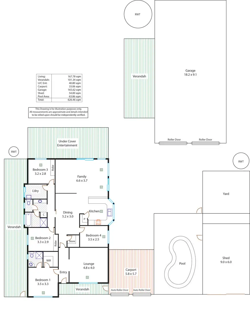 The wow factor continues once you walk outside and a credit to the owners for this beautifully presented and well thought out area. It offers a large verandah perfect for entertaining that is overlooking a beautifully maintained garden. The large swimming pool (currently used as a fish pond) is in the perfect position, all securely fenced and with solar heating also available once connected.