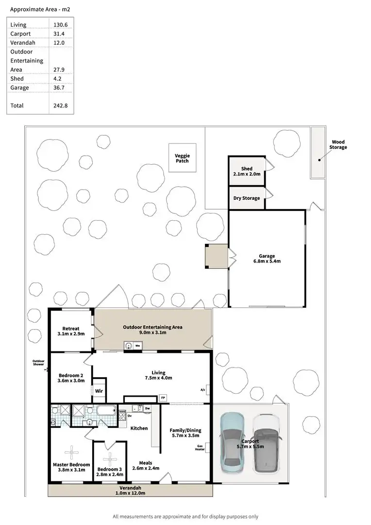 - Double carport + extra space along the side for secure storage of the trailer or boat + secure off-street parking behind extra-wide front gates