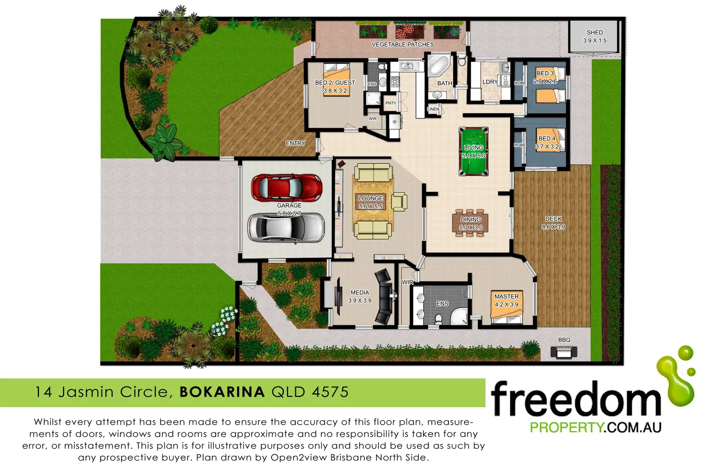 4 Bed • 3 Bath • 2 Car • 600m²