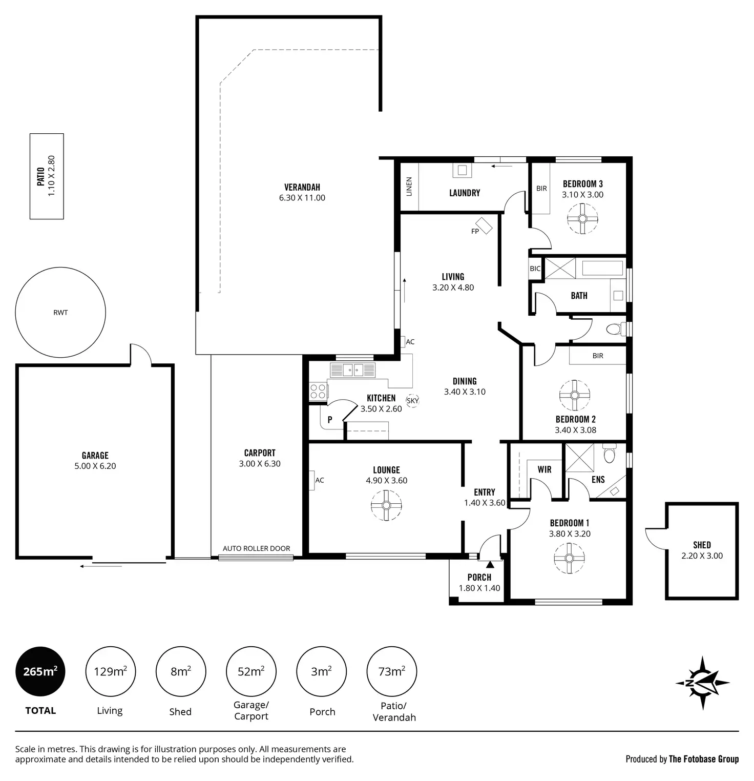 • 6.3m x 11m enclosed outdoor entertaining area with built-in benchtops and lighting